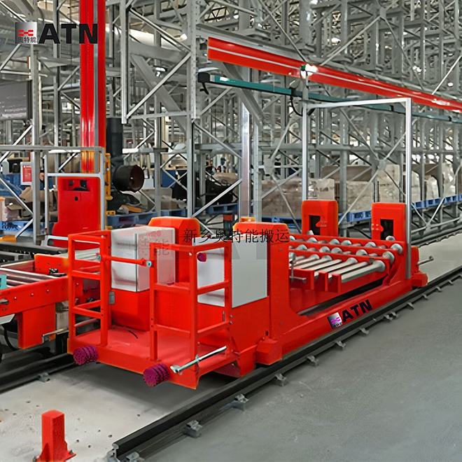 与手动叉车或初级自动化设备相比,RGV在精度、负载和适应性上表现突出。手动叉车依赖操作员经验,定位精度波动大,且最大负载通常仅限5吨;而RGV通过轨道导引,负载可达50吨,精度稳定在毫米级。在能源效率方面,RGV的电动驱动比内燃叉车节能30%,同时减少碳排放。此外,RGV的窄巷道作业能力直接解决了传统设备对空间的高需求问题——例如,在柔性化生产线上,RGV可自适应布局变化,而固定路径设备需重新规划。